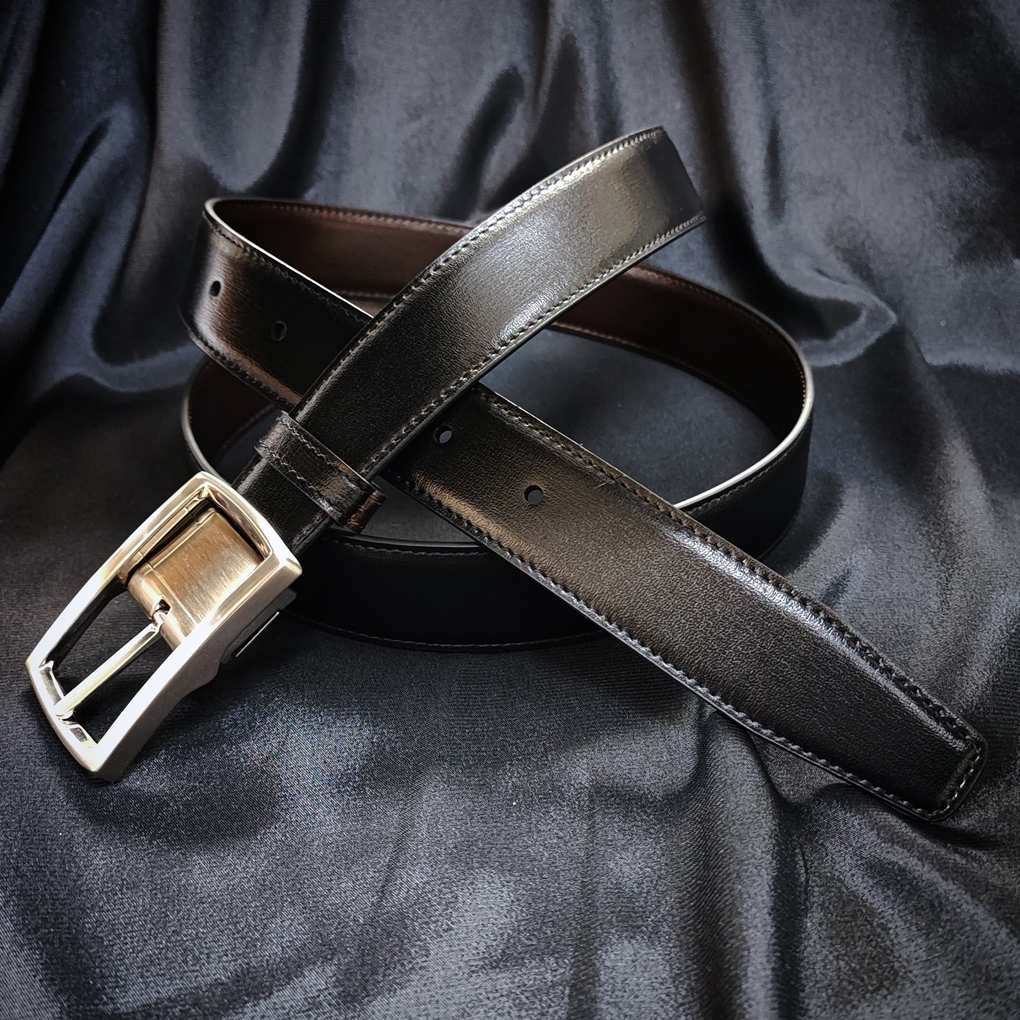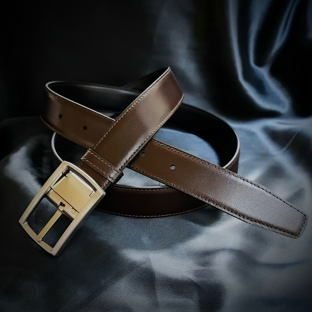 シンプルなデザインのバックルでリバーシブルに使えるデザイン。帯を通すループ自体もリバーシブルと