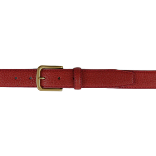 上質なイタリア製ソフトレザーの高級ベルト。柔らかな手触りの牛革にイタリア染色ならではの鮮やかな色合いがマッチ。少し大きめにデザインし、磨き上げられたなめらかなフォルムのバックルが、ベルトに負けない存在感を主張してカジュアルスタイルにアクセントを付けます。