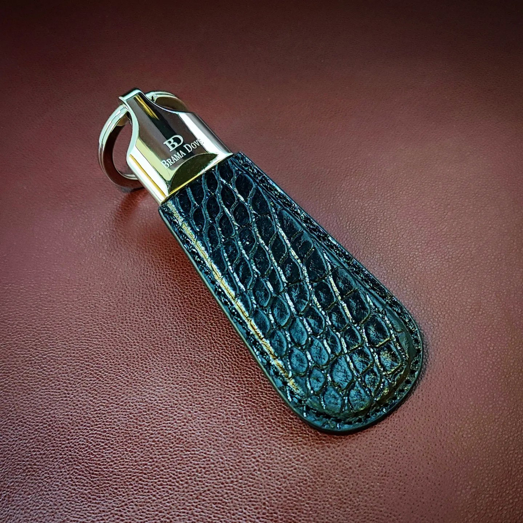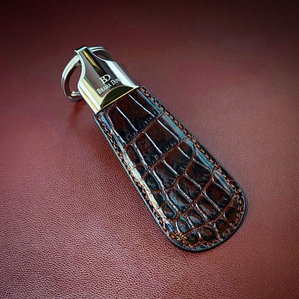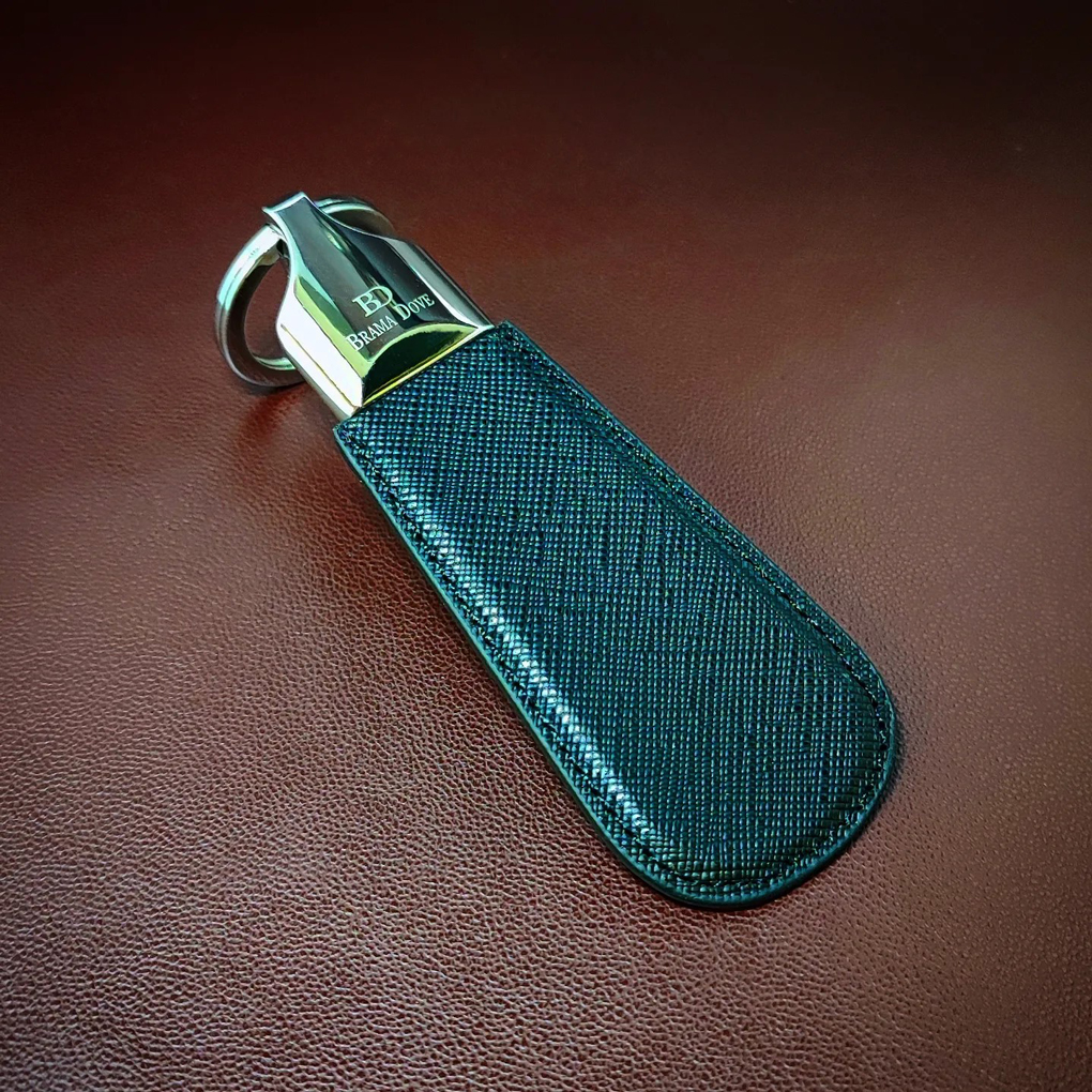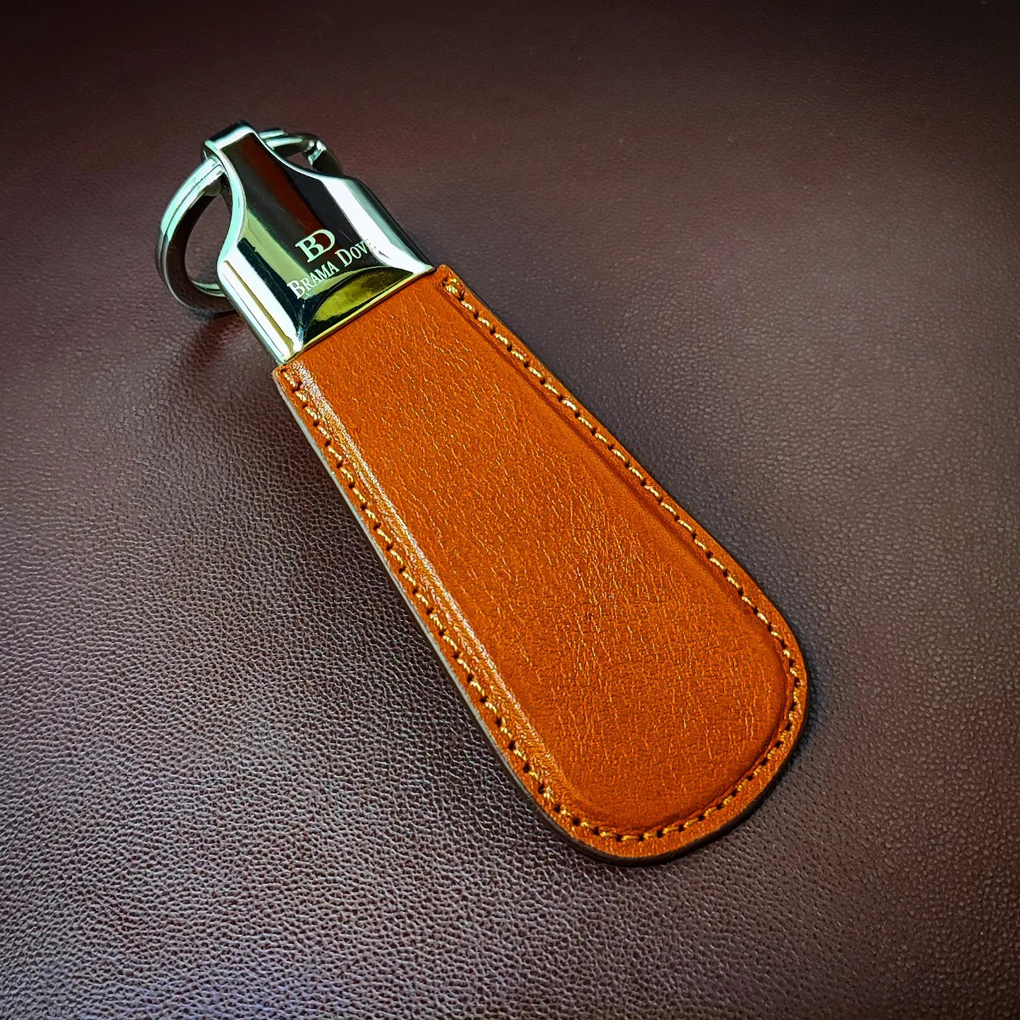 上質な牛革を使用したキーホルダー。靴べらとして使用できる機能性も備えた製品です。