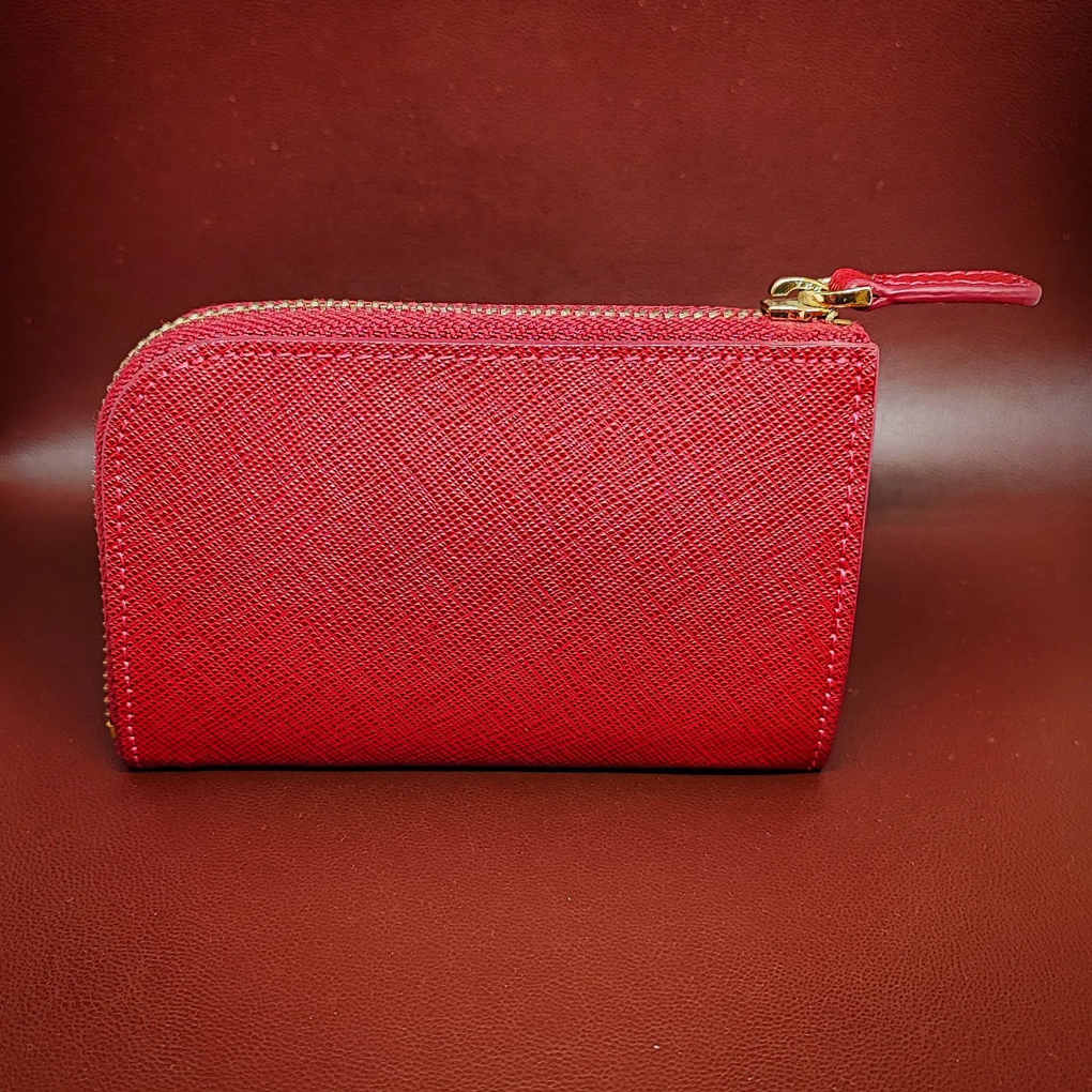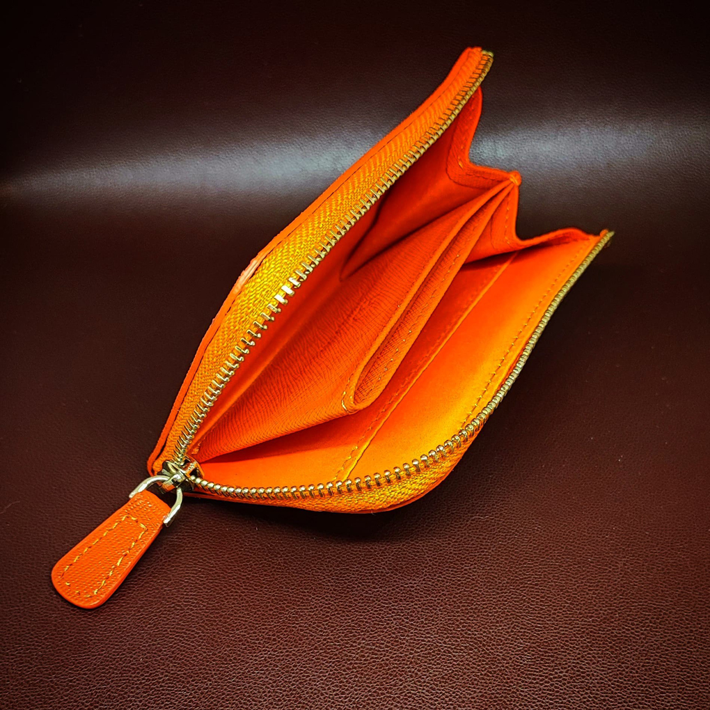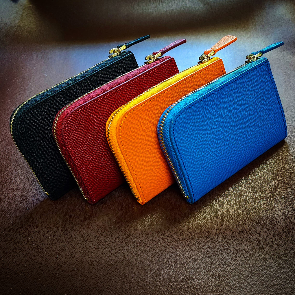 ファスナー付小銭入れです。開けやすく出し入れしやすいように設計されたラウンドは手にすっきりと収まるサイズ。