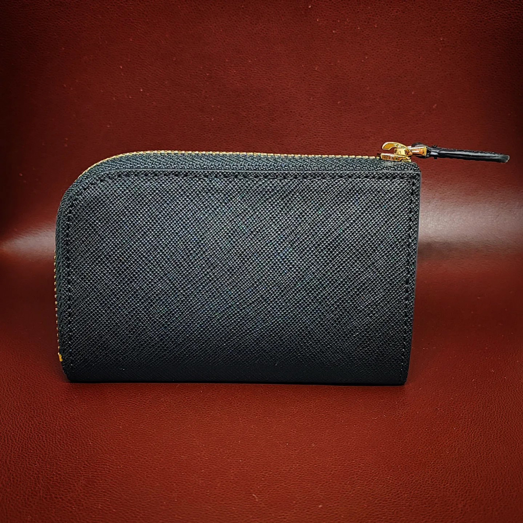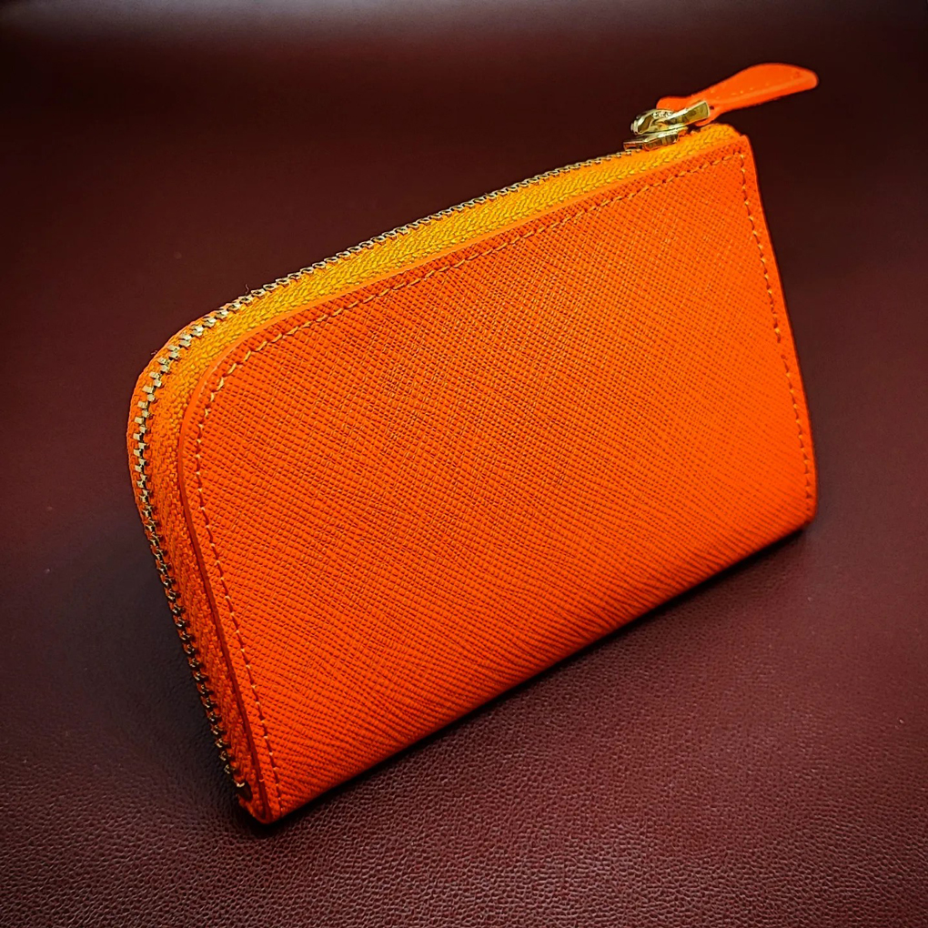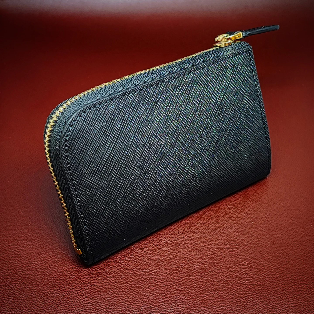 ファスナー付小銭入れです。開けやすく出し入れしやすいように設計されたラウンドは手にすっきりと収まるサイズ。