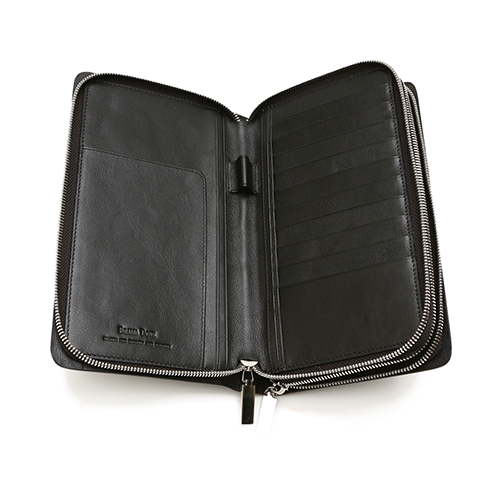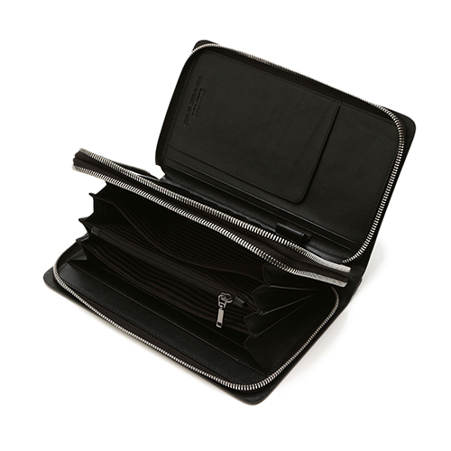 - カードポケット8段×2、パスポート収納エリア×1、札入れ×1、フリーポケット×8、モバイルポケット×1、ファスナー付き小銭入れ×1、ペン差し×1